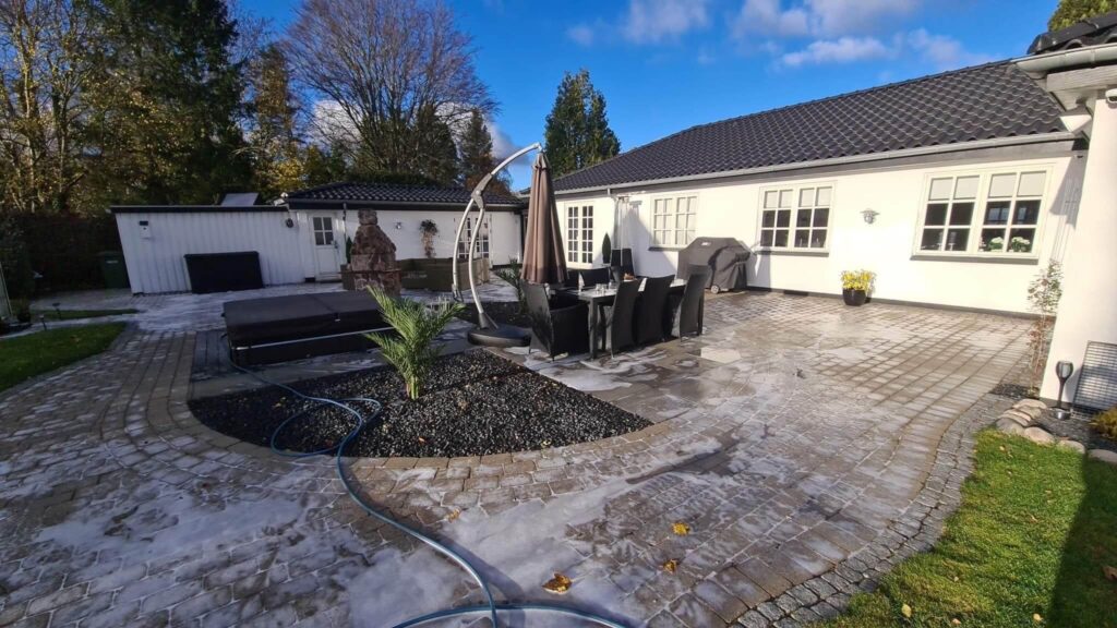 I stedet for at få lagt nye fliser kan du med fordel investere i en algebehandling af fliserne. Det er en meget billig og mere bæredygtig løsning sammenlignet med en helt ny belægning, og så slipper du samtidig også for besværet, som det medfører. I stedet vil du med vores hjælp få en flot belægning, der nærmest ser ud som ny fri for både mos, alger, flisepest og lignende.